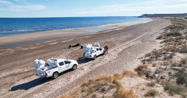 Reforzando las acciones que se llevan adelante desde la Mesa Técnica Provincial de Residuos Pesqueros, se realizó una nueva limpieza en una zona del Área Natural Protegida Península Valdés, donde se registra una intensa acumulación de residuos plásticos que llegan desde el mar a las costas.