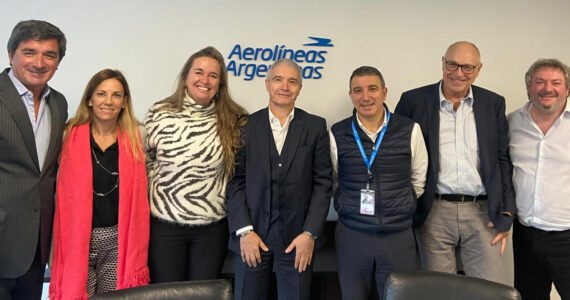 Marcelo Marchetti, encargado de la comisión de transporte aéreo de la Federación Argentina de Asociaciones de Empresas de Viajes y Turismo (FAEVYT), junto a otros miembros de la Comisión FAEVYT/FAC…